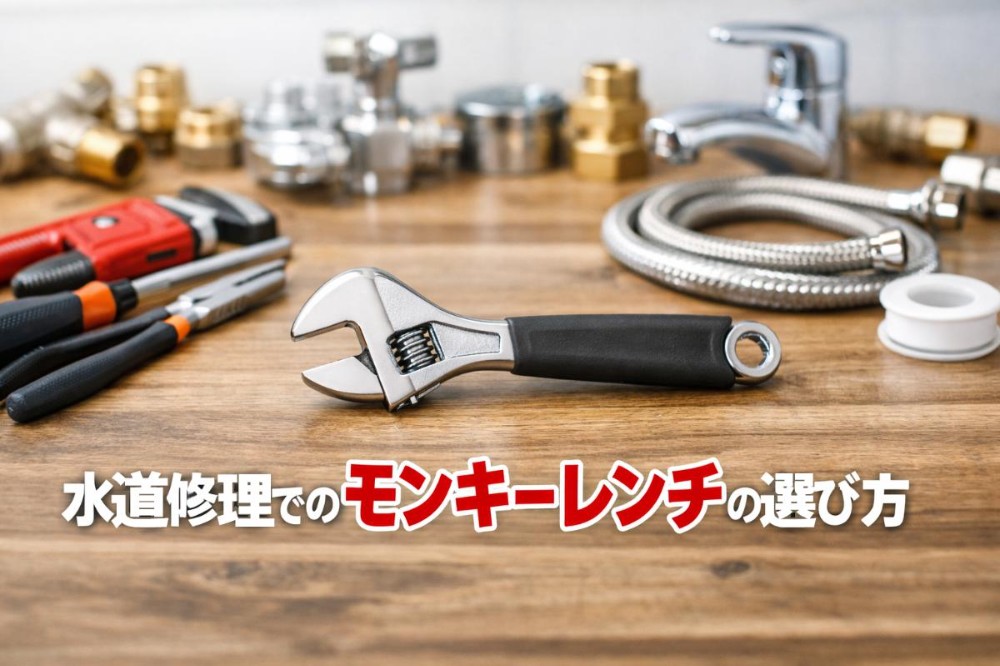- <p>「蛇口から水が漏れて止まらない…」「ナットが固くて回らない…」そんな水道トラブルに直面した経験はありませんか?</p> <p> </p> <p>実は、家庭で発生する水道修理のうち、多くのケースでモンキーレンチ1本があれば対応できると言われています。しかし、レンチのサイズや種類を間違えると、配管やナットを傷つけてしまい、修理費用が余計にかかるリスクもあります。「どのモンキーレンチを選べばいいの?」と迷う方も多いでしょう。</p> <p> </p> <p>さらに、ホームセンターや通販サイトで販売されているモンキーレンチは多様なラインナップがあり、用途や現場によって適したタイプが異なります。適切な工具を選ぶことが、作業の「安全性」と「効率性」を大きく左右します。</p> <p> </p> <p>本記事では、失敗しないモンキーレンチの選び方と正しい使い方を徹底解説します。</p> <p> </p> <p>最後まで読むことで、「自分にぴったりのモンキーレンチ」が見つかり、突然の水漏れトラブルにも自信を持って対応できるようになるはずです。</p> <p> </p> <div class="info box"><div class="title">安心の水道修理サービスでトラブル解決 - クニケンの水道修理</div><div class="text"><p>クニケンの水道修理は、豊富な経験と確かな技術で、水まわりのトラブルを迅速かつ丁寧に解決いたします。蛇口の水漏れや排水口の詰まり、給湯器の故障など、多岐にわたる修理に対応し、お客様の生活を支える安心のサービスを提供しています。24時間365日承っており、いつでもご相談いただける体制を整えております。また、お見積もりは明確で分かりやすく、初めての方でも安心して気軽にお問い合わせいただけます。信頼を第一に、お客様満足度の向上を目指し、日々努力を重ねております。<a href="/">水道修理</a>に関するお悩みは、ぜひクニケンの水道修理にお任せください。</p></div><div class="contents"><div class="image"><img src="/img/logo.svg" alt="クニケンの水道修理"></div><div class="content"><table><tbody><tr><th colspan="2">クニケンの水道修理</th></tr><tr><th>住所</th><td><p>〒811-0206</p>福岡県福岡市東区雁の巣2-48-8</td></tr><tr><th>直通番号</th><td><a class="tel" href="tel:092-608-6228">092-608-6228</a></td></tr><tr><th>フリーダイヤル</th><td><a class="tel" href="tel:0120-506-333">0120-506-333</a></td></tr></tbody></table><p><a class="btn" href="/contact.php">お問い合わせ</a><a class="btn sns" href="https://line.me/R/ti/p/@280ozcby?from=page&searchId=157isaem" target="_blank" rel="nofollow noopener noreferrer">公式LINE</a></p></div></div></div> <h2>水道修理に最適なモンキーレンチの基礎知識と選び方</h2> <h3><strong>モンキーレンチの構造と水道修理での役割</strong></h3> <p>モンキーレンチは、口幅を自在に調整できる工具で、水道管や蛇口のナットやボルトをしっかり掴み、必要に応じて締めたり緩めたりできます。特に水道修理では、配管や蛇口の交換、パッキンの取り替え作業など幅広い場面で活躍します。ナットや配管のサイズに合わせて調整できるため、他の工具よりも作業効率が高まり、1本で多用途に対応できる点が大きなメリットです。</p> <p> </p> <p><strong>モンキーレンチの各部品の名称と水道管・蛇口の作業での活用方法</strong></p> <p> </p> <p>モンキーレンチの主な部品は以下の通りです。</p> <p> </p> <table> <tbody><tr> <td><strong>部品名</strong></td> <td><strong>役割・特徴</strong></td> </tr> <tr> <td>グリップ</td> <td>握りやすさと作業の安定性に直結</td> </tr> <tr> <td>可動ジョー</td> <td>ナットやボルトのサイズに合わせて幅を調整</td> </tr> <tr> <td>固定ジョー</td> <td>可動ジョーと対になる部分。しっかりと部材を挟む</td> </tr> <tr> <td>目盛り</td> <td>サイズ確認、調整の目安として活用</td> </tr> </tbody></table> <p> </p> <p>蛇口の取り外しや水道管ナットの締め付けなど、狭い場所や見えにくい場所でも、しっかり固定して作業できる点が特徴です。正しい使い方を守ることで工具の傷みやパーツの破損も防げます。</p> <p> </p> <p><strong>水道修理で使うモンキーレンチの種類と特徴</strong></p> <p> </p> <p>水道修理に使われるモンキーレンチは主にサイズや形状で分類されます。一般的な150mm~300mmが家庭用水道作業に適しており、ワイドタイプや薄型モデルも人気です。軽量設計のものは長時間の作業でも手が疲れにくく、グリップ部分が滑りにくい加工だと安全性が向上します。水栓や配管など、用途に応じて最適なサイズを選ぶことが重要です。</p> <p> </p> <h3><strong>用途別に最適なタイプの選び方</strong></h3> <p>水道修理には、作業場所や対象部品のサイズに合わせてモンキーレンチを選ぶことが大切です。</p> <p> </p> <ul> <li><strong>ワイドタイプ</strong>:開口幅が広く、大きなナットやパイプに対応しやすい</li> <li><strong>薄型タイプ</strong>:狭い場所や壁際のナットも楽に回せる</li> <li><strong>軽量タイプ</strong>:女性や高所作業にも最適で、長時間使用でも疲れにくい</li> </ul> <p> </p> <p>水道の蛇口交換や配管修理には、これらの特徴を考慮し、必要に応じて複数サイズを揃えるのがおすすめです。特に家庭用の場合は